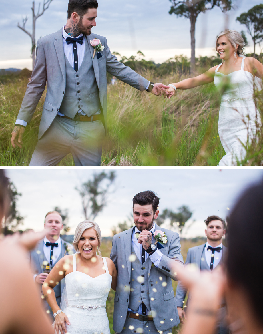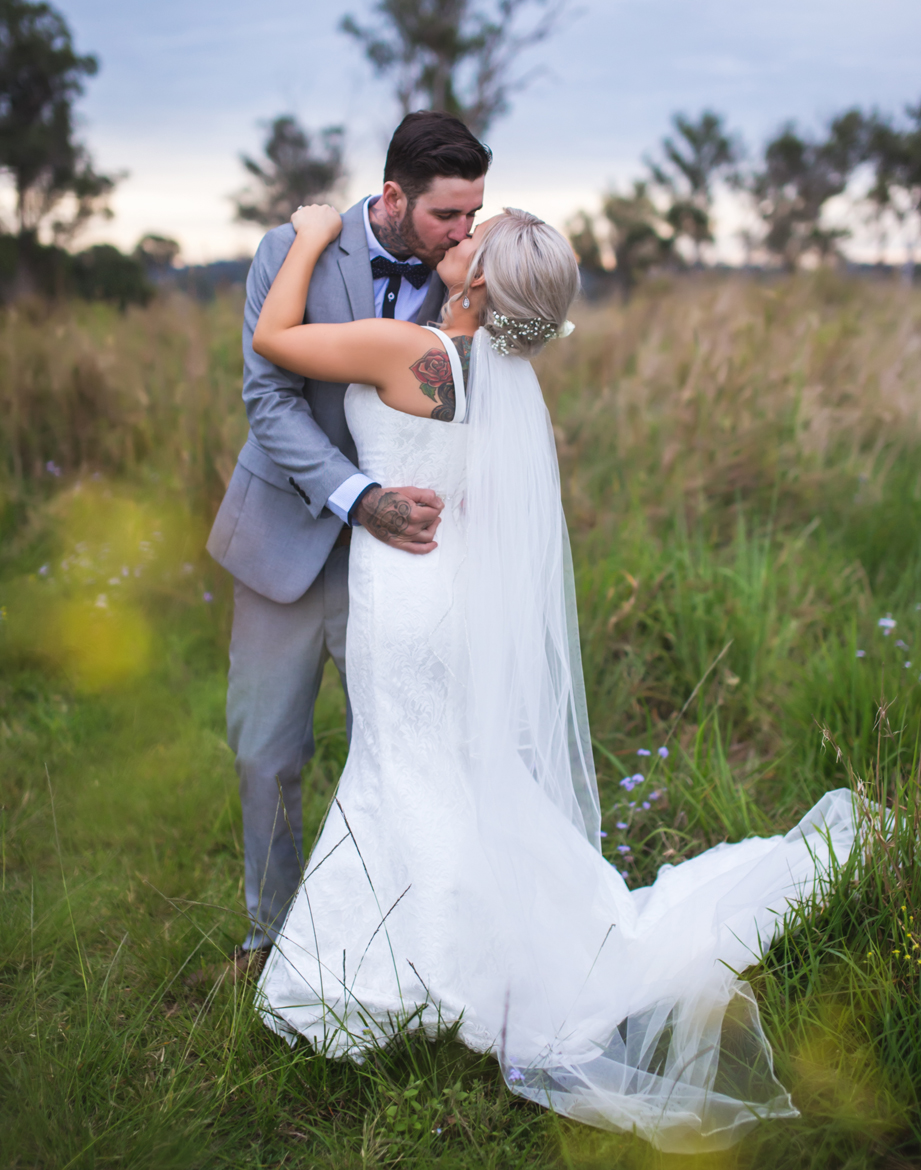 Mother nature doesn’t always co-operate on your wedding day..take Stacey and Rory’s wedding day for example. It rained all day and ended with a huge thunderstorm. With some umbrellas and 5min break we worked some magic with the watercolour skies at the long grass field. Sirromet is spoilt for great photo locations and as the vines were not in season, we spent the afternoon frolicking in the long grass!!